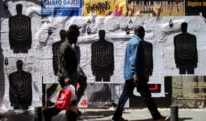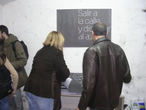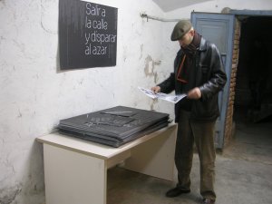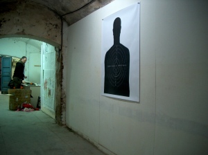 El colectivo de artistas de Madrid, El Perro, ha llenado en dos ocasiones distintas las calles de Madrid y Roma de dianas con una figura humana como objetivo. Este tipo de dianas son las que utiliza la policía para sus prácticas de tiro. La misma policía que en Roma requisó todas las dianas por publicidad ilegal. Y, en efecto, las dianas de El Perro publicitaban la exhibición de su pieza Lo importante es participar: una galería de tiro en la que el visitante puede jugar a disparar con la imagen de los transeúntes proyectada. |